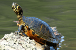 Reptiles have backbones, mostly live on land, and are are cold-blooded, which means their body temperature changes with the weather. When it’s warm, they warm up. When it’s cold, they cool down. Reptiles have dry, scaly skin and usually lay eggs with strong shells. They lay eggs. Today, reptiles that are still alive include turtles, crocodiles, snakes, lizards, and a rare reptile called the tuatara.