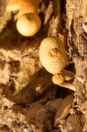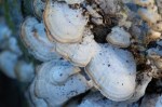 Bracket fungi, also called shelf fungi, are a special kind of mushroom. These fungi grow in a cool way – they make shelf-like shapes called conks. You can often see these conks sticking out from trees or old wood, sometimes in rows. Some bracket fungi are small with just a few caps, while others can be really big with lots of rows of caps that can be heavy! They usually grow on trees, both living and dead, and sometimes on fallen wood. Some types grow new conks every year. Others are perennial, which means they can live for many years and keep growing bigger. Bracket fungi are usually tough and strong. On the bottom of their conks, they release tiny spores called basidiospores. These spores float away and help new fungi grow in other places.